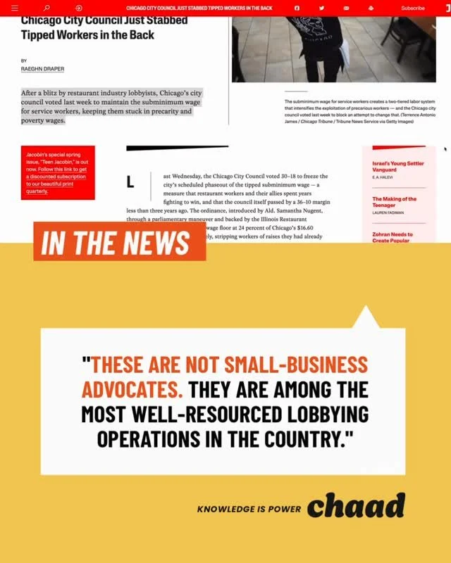 The CHAAD Project is led by hospitality workers for hospitality workers — we advocate, document abuse, and grow worker power.