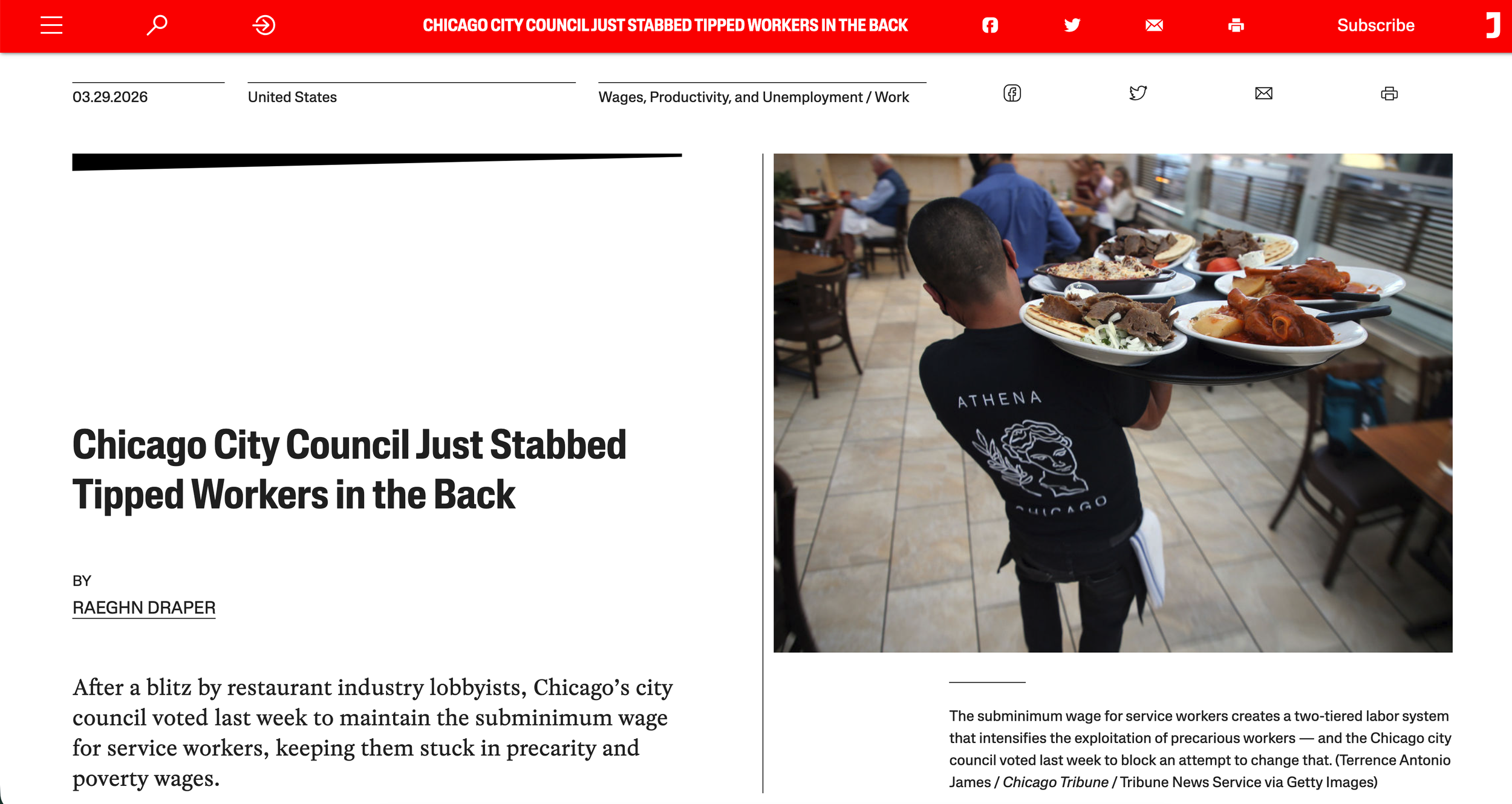 Chicago City Council Just Stabbed Tipped Workers in the Back Mar 29 Written By The CHAAD Project After a blitz by restaurant industry lobbyists, Chicago’s city council voted last week to maintain the subminimum wage for service workers, keeping them stuck in precarity and poverty wages. The CHAAD Project https://www.thechaadproject.com